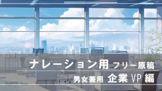 ボイスサンプル原稿【15秒・30秒】企業VP・CM編ボイスサンプルナレーションフリー原稿(男女兼用) 男性・女性兼用のナレーション原稿です。練習・オーディションなどでご自由にお使いいただけます。練習しやすいようにコピーボタンを設置しました(原稿自体の公表や配布はしないでくださいね)詳しい利用方法に関しては掲載している原稿の取り扱い・著作権に... 2026.02.04ボイスサンプル原稿
