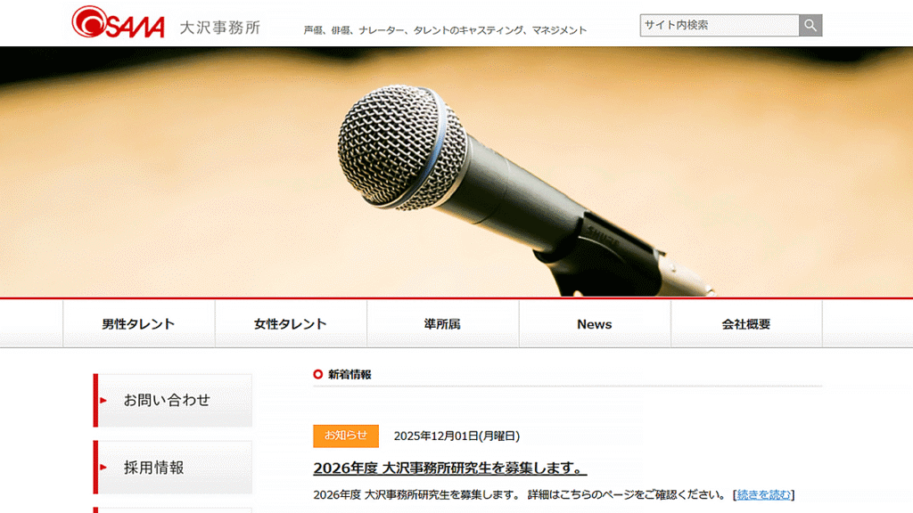 | 公式ページ | 大沢事務所研究生募集 |